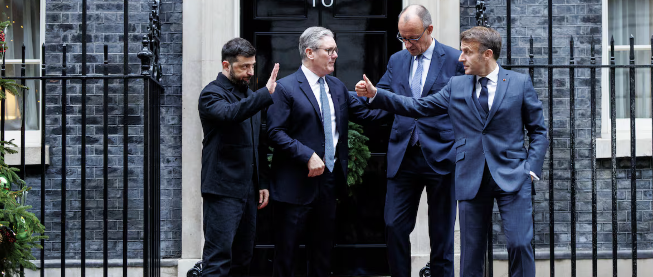 El primer ministro británico, Keir Starmer, recibió en Londres a Emmanuel Macron, Friedrich Merz y Volodímir Zelenski para discutir el plan de paz impulsado por Washington y el futuro de Ucrania. Francia, Alemania y Reino Unido (principales contribuyentes de la OTAN después de EE. UU.) expresaron sus reservas frente al borrador presentado por la Administración Trump, al considerarlo excesivamente favorable a Moscú. Merz fue el más crítico y señaló su escepticismo ante algunos puntos de la propuesta estadounidense, aunque recalcó la importancia de mantener el diálogo.