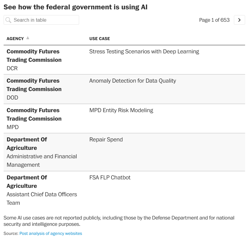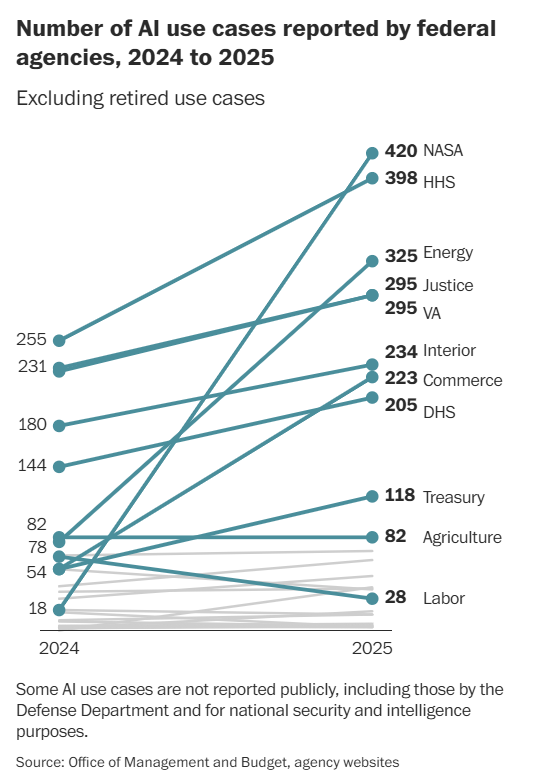 Duncan, I., Merrill, J., Schaul, K., & Dou, E. (2026, February 9). Trump set off a surge of AI in the federal government. See what happened. The Washington Post. https://www.washingtonpost.com/technology/2026/02/09/trump-administration-ai-push/